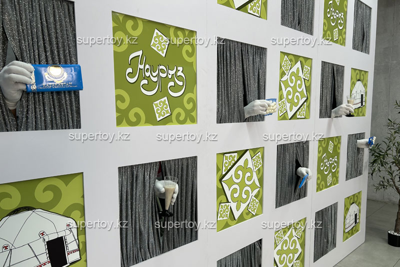 Устройте встречу гостей мероприятия с гарантированным ВАУ-эффектом! Для этого ивент-агентство «Супер Той» подготовило оригинальный приветственный стенд «Стена поздравлений». Из специально оформленных окошек появляются волшебные руки, которые вручают проходящим мимо посетителям памятные подарки, задания для тимбилдинга, рекламные буклеты или просто бокал шампанского.