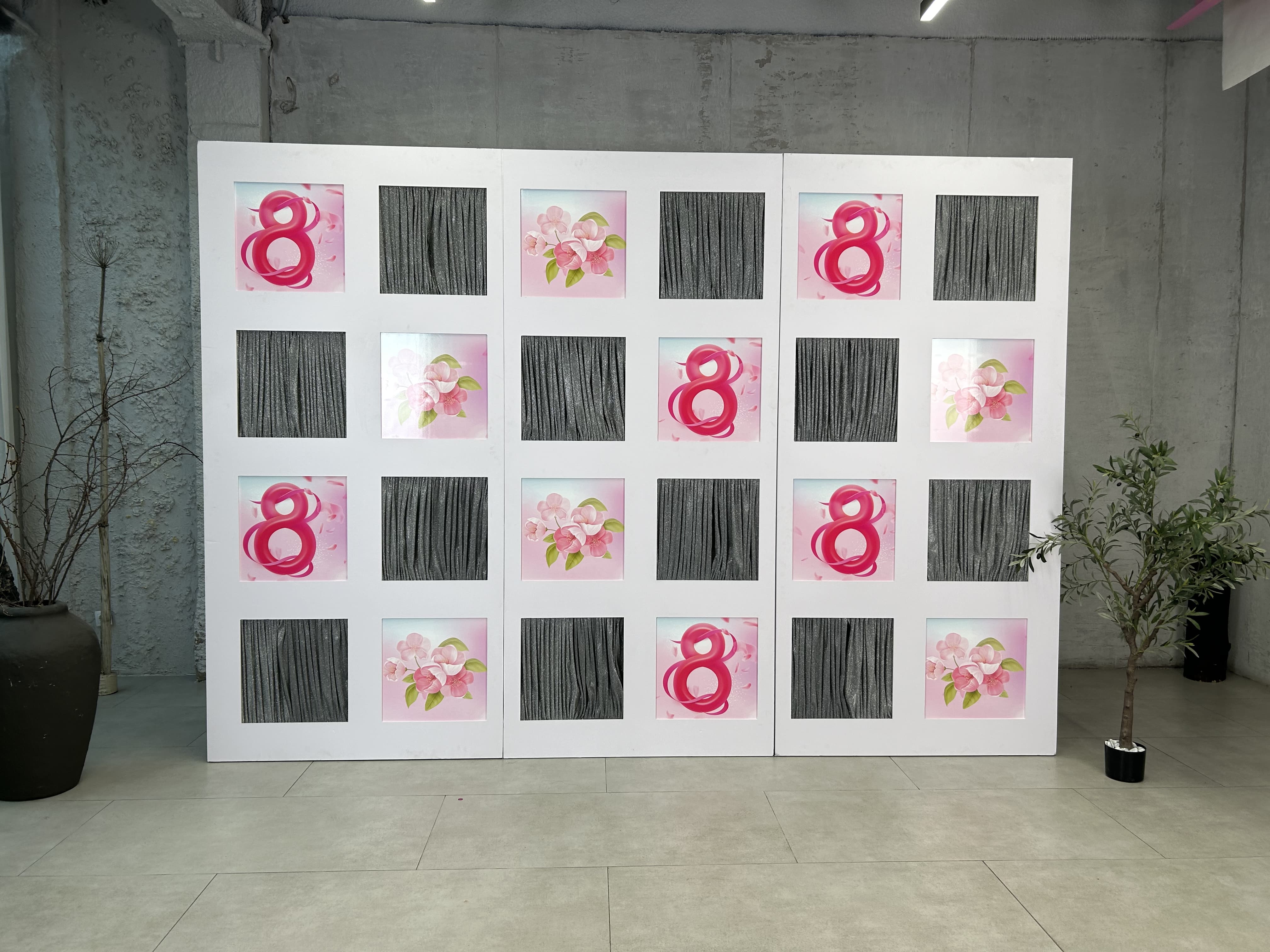 «Стена поздравлений» брендируется, например, логотипами мероприятия и спонсоров, корпоративной символикой и так далее. Поэтому она выполняет дополнительную роль — эффектной фотозоны.
